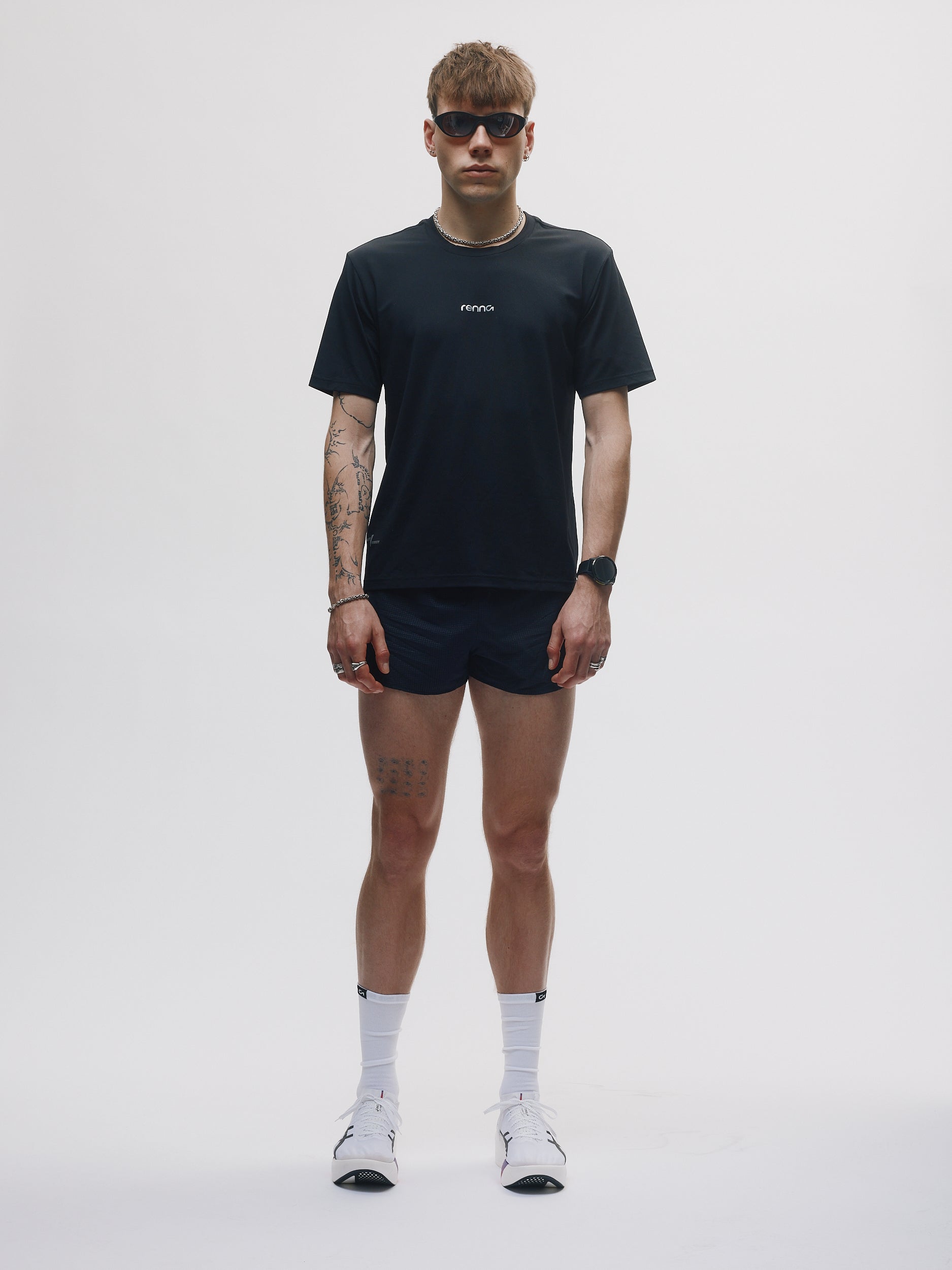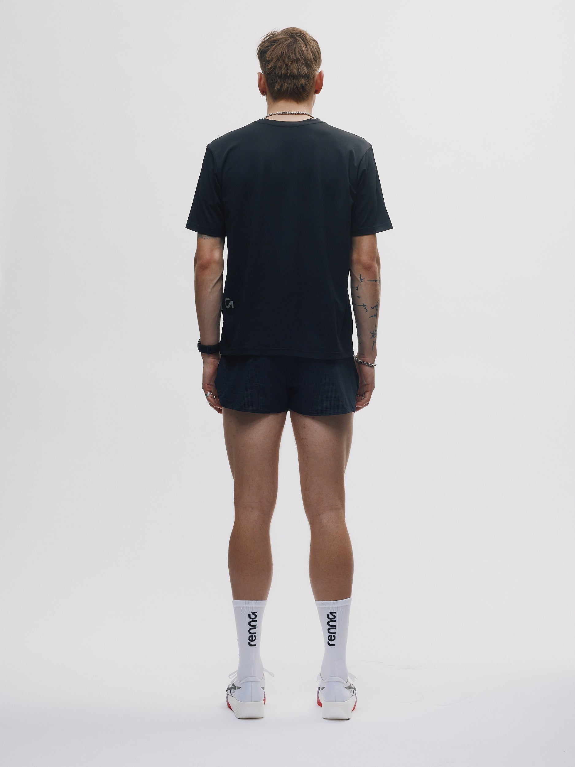 The Short Sleeve Running T Shirt 000001 is cut in a loose fit, the way we prefer to wear it at Renna. It sits clean on body, gives you space to move, and stays comfortable when pace and temperature rise. A reflective print detail adds visibility in low light conditions.